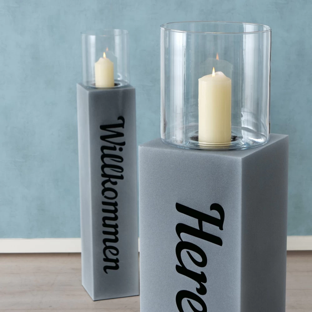 Windlicht Hereinspaziert, H 125,00 cm, Eisen pulverbeschichtet, Einfarbig, Hellgrau