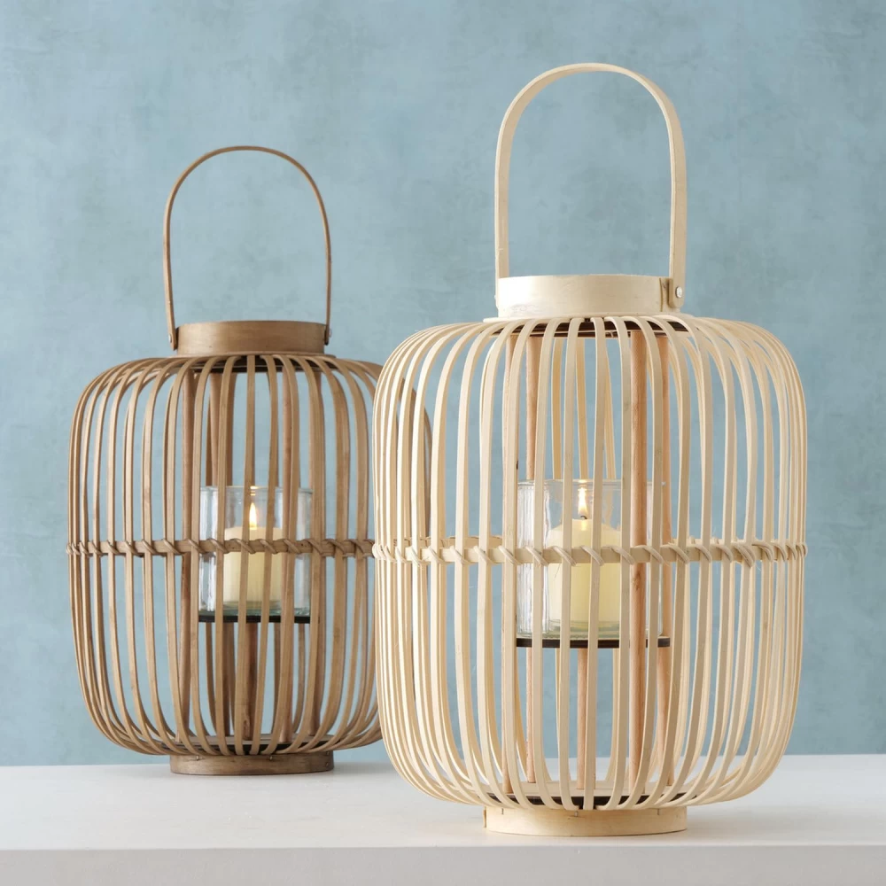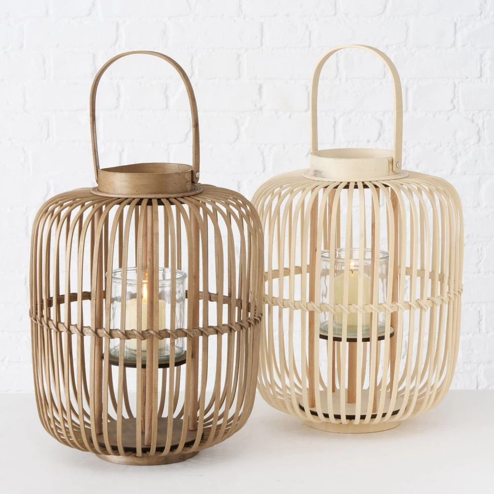 Windlicht Silas, 2 sort., H 43,00 cm, Bambus (Phyllostachys edulis), Mehrfarbig, Natur, Hellbraun
