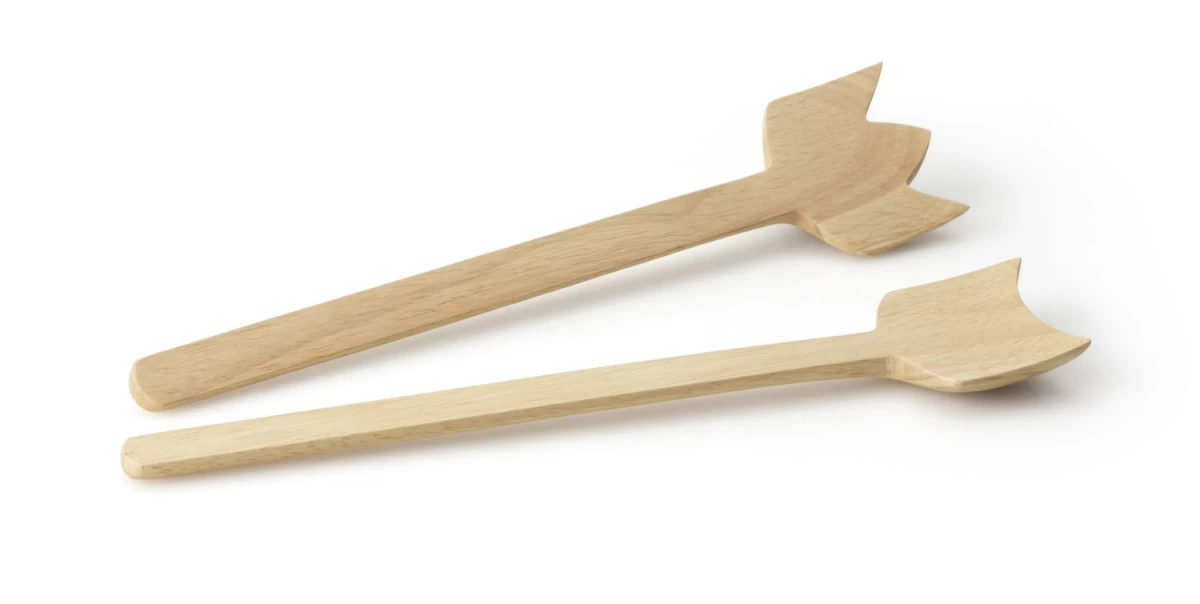 Schlichtes und funktionales Salatbesteck aus Massivholz.
