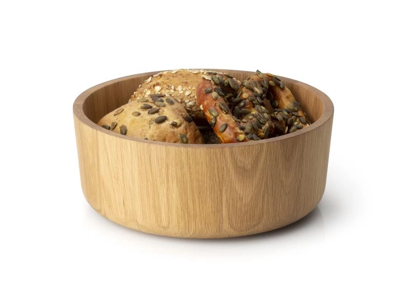 Hochwertig in Europa verarbeitetes, robustes Eichenholz mit schöner Struktur und natürlicher Farbgebung. Elegante hohe Schüssel, perfekt zum Servieren von Salat oder auch ideal als Obstschale.