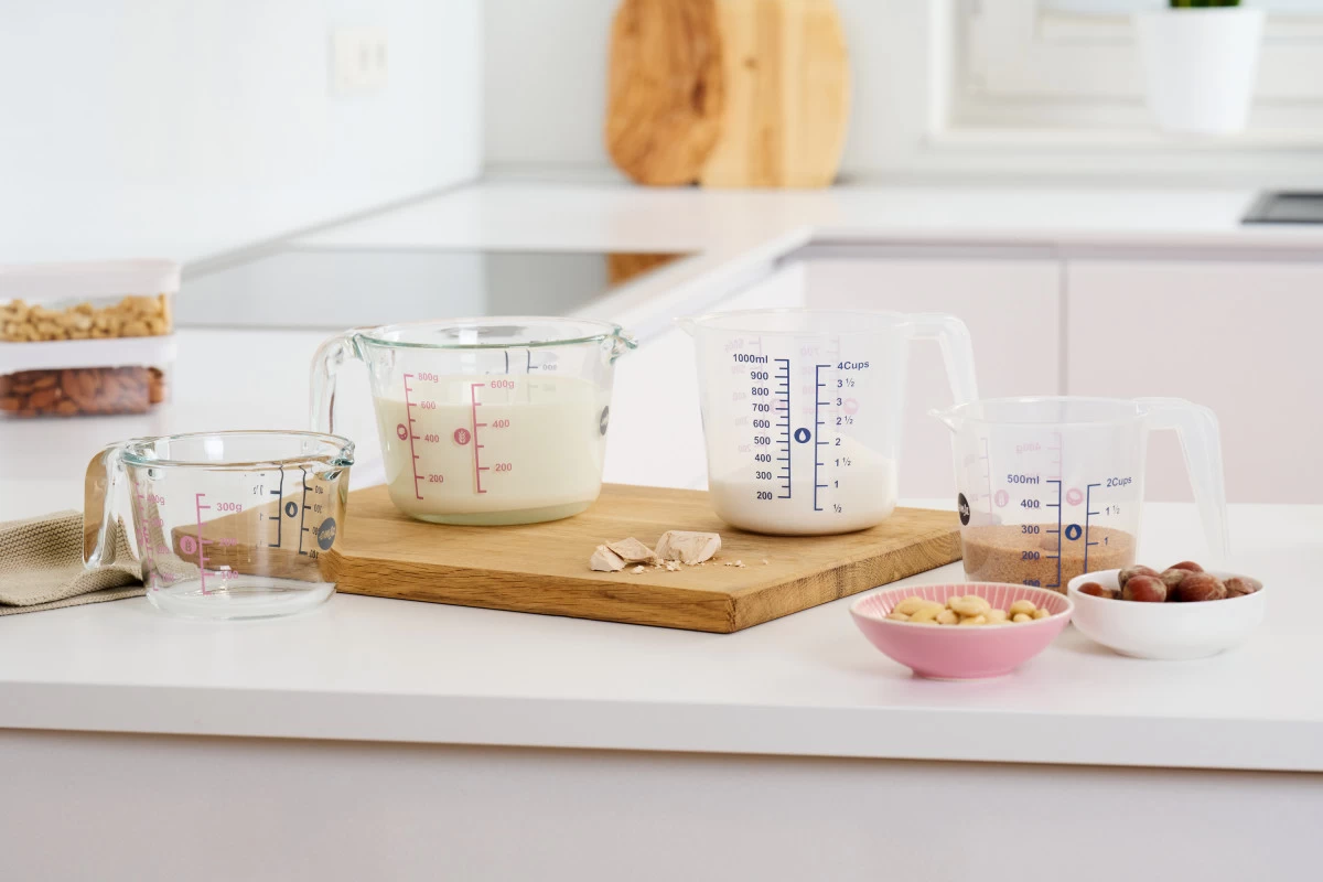 Aus robustem Glas, um den Füllstand der Zutaten im Krug bequem ablesen zu können.