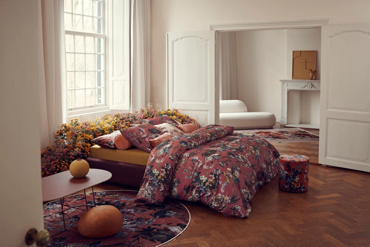 Meet Isabelle! Das neueste Prunkstück von ESSENZA. Auf der Vorderseite der Bettwäsche leuchtet der üppige Blumendruck auf einem marsalafarbenen Hintergrund, während die Rückseite die Konturen des Dessins zeigt. Der Bettbezug ist aus einem Materialmix aus dem nachhaltigen Lyocell und Baumwollsatin gefertigt, eine herrlich seidenweiche Kombination. Der florale Druck ist beidseitig digital bedruckt, vollkommen innovativ: nicht nur in Sachen Nachhaltigkeit, sondern auch in Sachen Optik. So können Sie den Bettbezug beidseitig stylen und einen völlig einzigartigen Look in Ihrem Schlafzimmer kreieren. Die Bettwäsche Isabelle ist Teil der Premium-Kollektion und wird in einer luxuriösen Aufbewahrungsbox geliefert.