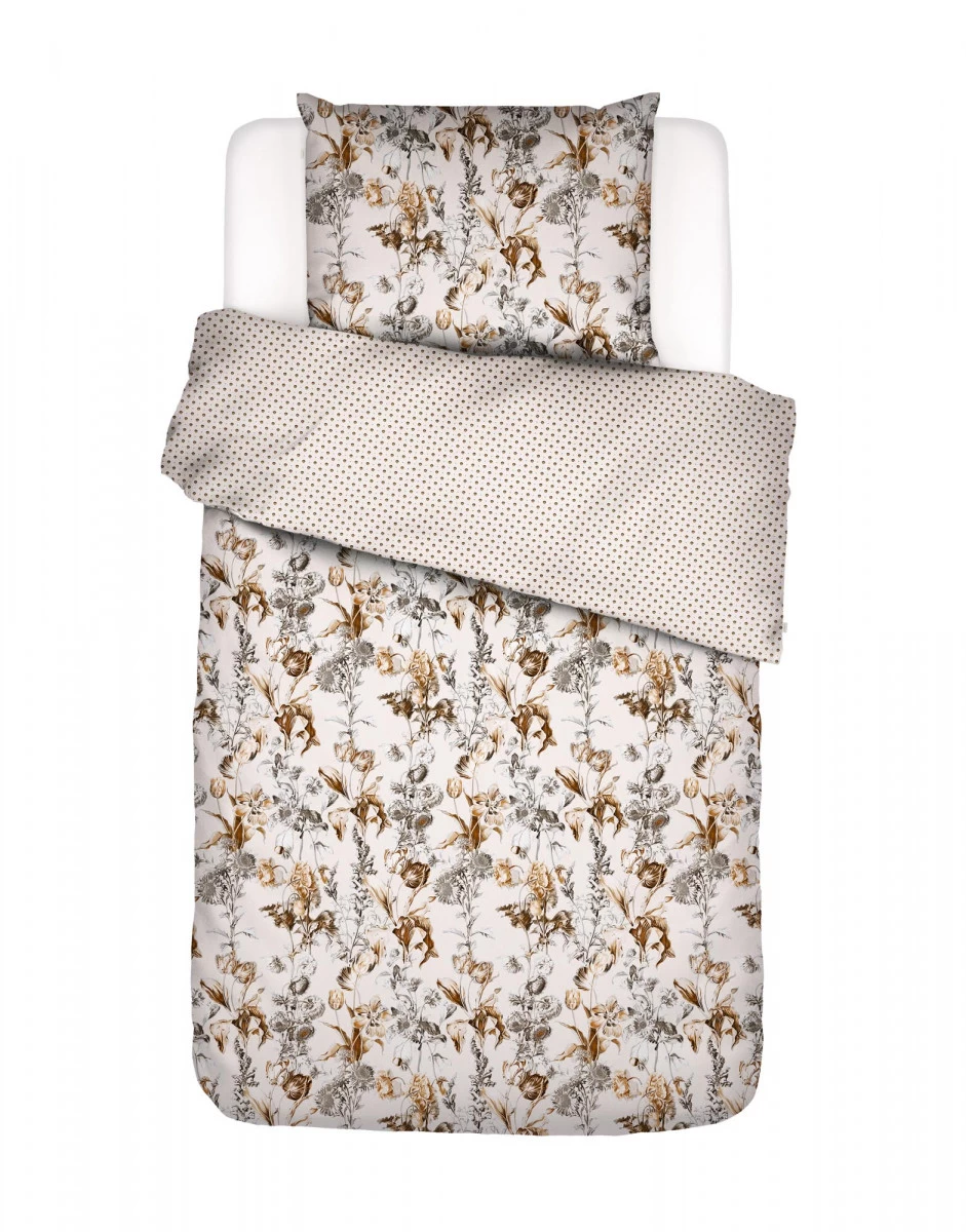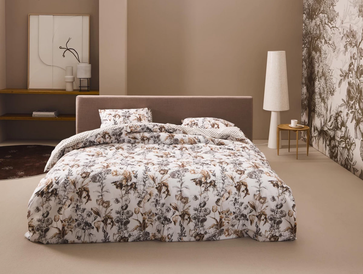 Wir lieben es zu sehen, wie bestehende Dessins in neuen Farben erstrahlen und so eine ganz neue Wirkung entfalten. Das Jackie Dessin ist von einem Tischläufer mit altniederländischen Blumenmalereien inspiriert. In Kombination mit der modischen Farbpalette der Kollektion erstrahlt das Muster in modernem Glanz! Der helle, vanillefarbene Untergrund bringt das Muster zum Leuchten und verleiht ihm zudem mehr Tiefe. Auf der Rückseite der Bettwäsche steht ein zartes Punktmuster in denselben Erdtönen im Fokus und macht das Dessin noch moderner. Die Bettwäsche ist aus frischem Baumwollperkal gefertigt und bringt einen einzigartigen Look in Ihr Schlafzimmer.