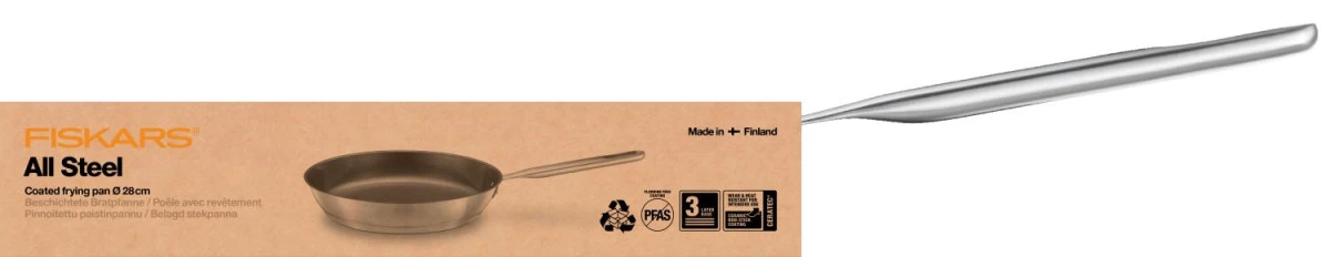 - Die Fiskars All Steel Bratpfanne bietet ein nachhaltiges und wunderschönes Kocherlebnis auf recyceltem Edelstahl