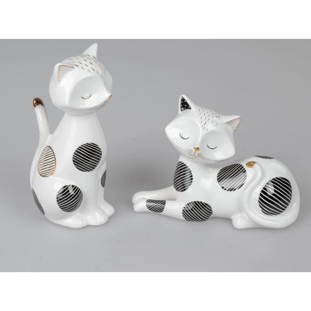 Katze 20 cm aus weiß-glasiertem Steingut mit schwarz-goldenem Retro-Design verziert, erhältlich in 2 verschiedenen Ausführungen