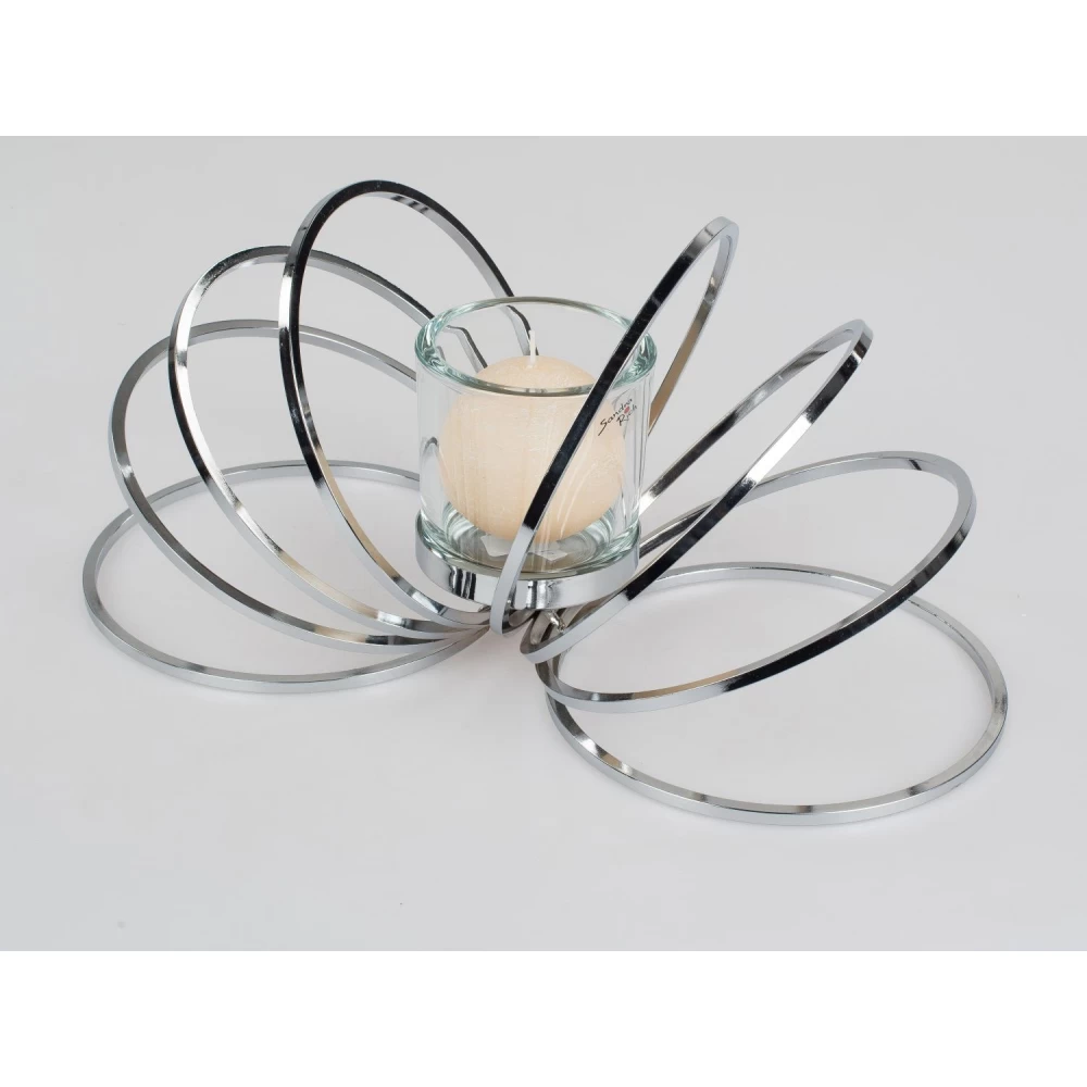 Windlicht Welle 42×20 cm, aus glänzendem, silbernem Metall mit Glas kombiniert