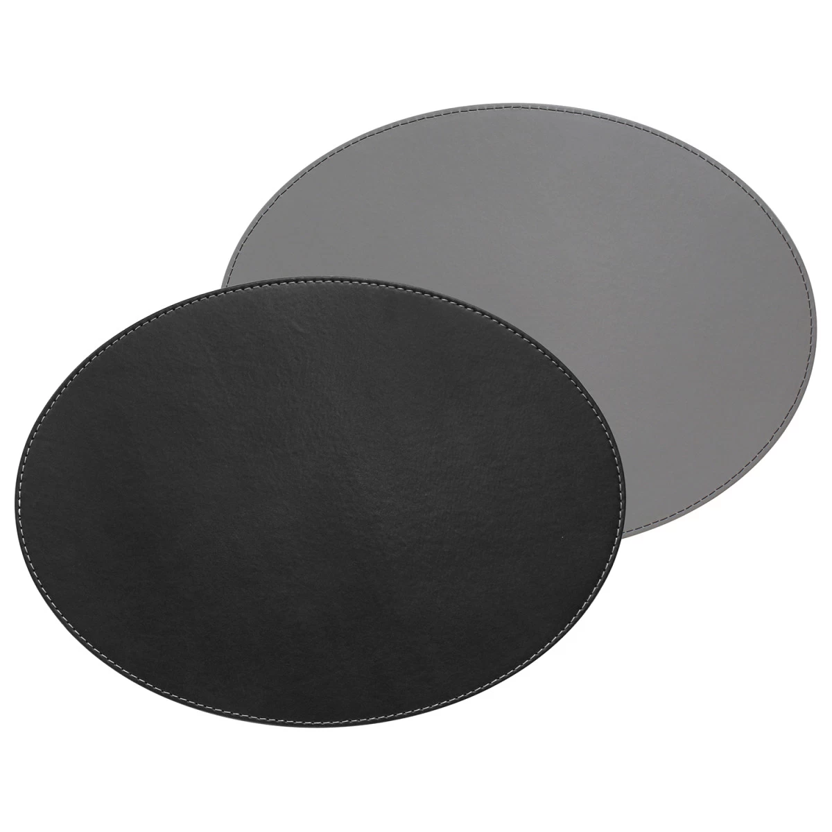 oval, schwarz/grau, Kunstleder, Maße: 45 x 34 cm