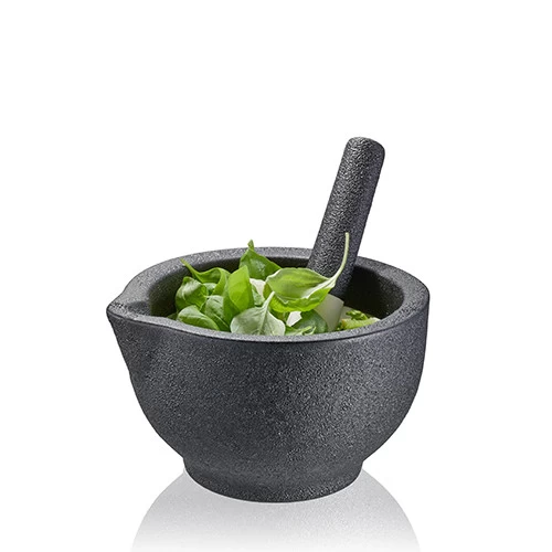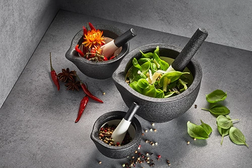 • zum Zermahlen von Gewürzen und Kräutern, z.B. für die Zubereitung von individuellen Gewürzmischungen oder frischem Pesto