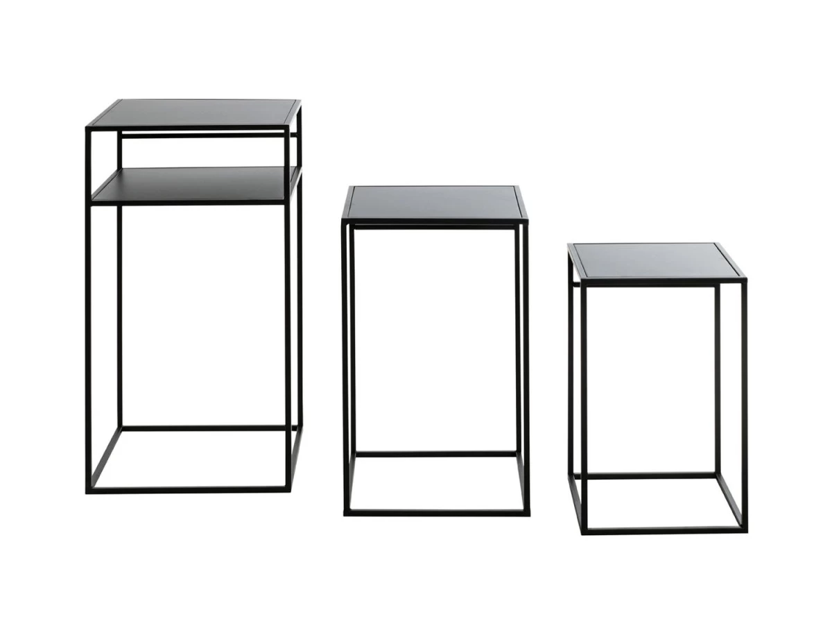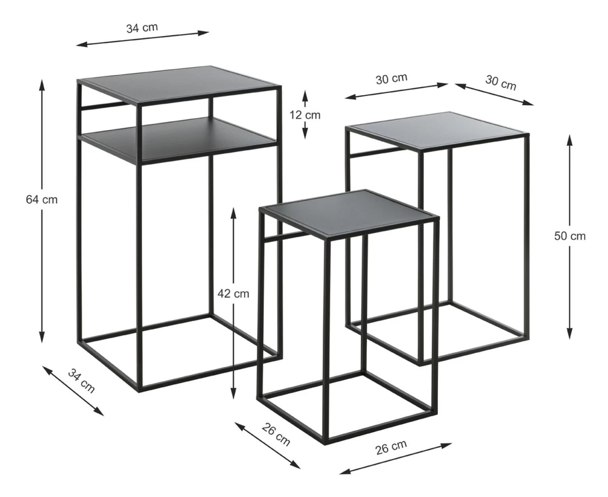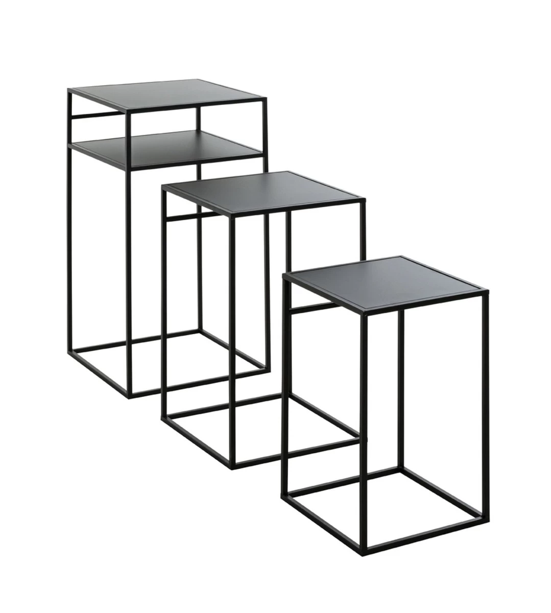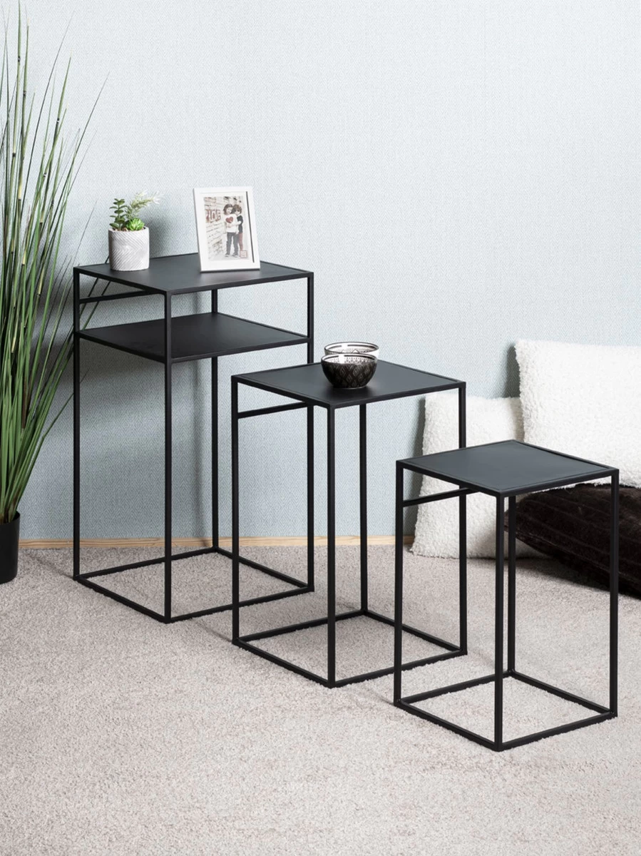 aus Stahlrohr in schwarz lackiert, Ablagen aus Metall in schwarz lackiert