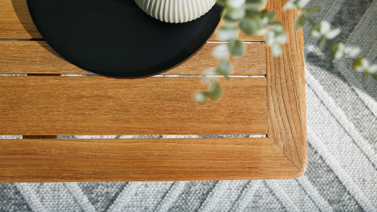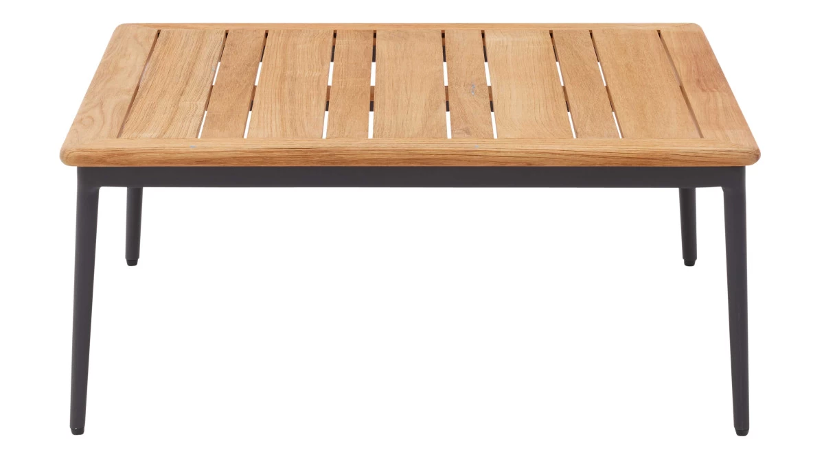 Details leicht gebürstete Teakholzlamellen anthrazitfarben pulverbeschichtetes Aluminium Maße ca. 89 x 38 x 89 cm (BxHxT) Highlights der Serie individuell kombinierbare Module Sitzmöbel inklusive Sitz- und Rückenkissen 5 Jahre Herstellergarantie