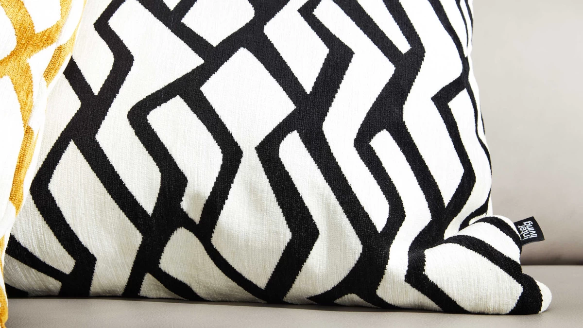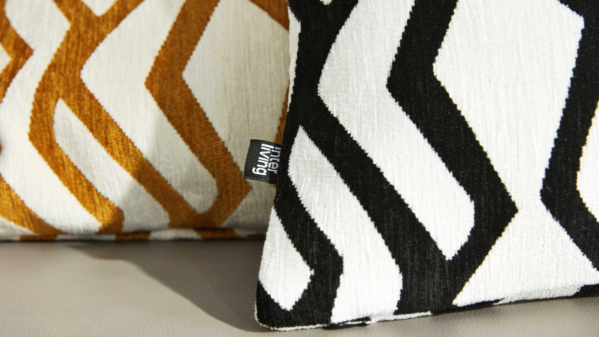 Die hochwertige Kissenhülle aus der Interliving Kissenhülle Serie 9106 besteht aus 57 % Viskose und 43 % Polyester. Durch die Ausgangsstoffe ist der Jaquardbezug extrem robust und widerstandsfähig, aber auch herrlich weich. Optisch begeistert das jaquardgewebte Muster in Schwarz-Weiß – es verleiht dem vorne und hinten identisch gestalteten Textil eine kreativ-verspielte und zugleich elegante Ausstrahlung. Der ca. 60 x 60 cm (BxL) große Kissenbezug, der Ihnen alternativ in weiteren Größen und modernen Farbvarianten zur Verfügung steht, ist einfach zu handhaben und angenehm pflegeleicht. An der Unterseite befindet sich ein verdeckter Reißverschluss. Indem Sie diesen öffnen, können Sie die Hülle schnell und mühelos über das Kissen stülpen – und auch wieder abnehmen, um sie bei bis zu 30 Grad zu waschen.