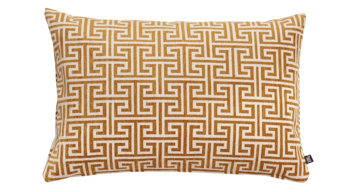 Mit ihrem goldfarbenen jacquardgewebten Labyrinthmuster auf puristisch weißem Hintergrund setzt diese Kissenhülle aus der Interliving Kissenbezug Serie 9110 einen kreativen modernen Akzent in Ihrem Wohn- oder Schlafzimmer. Ob auf dem Sofa oder Bett – das stilvolle Design zieht die Blicke auf sich. Die Maße des Kissenbezugs belaufen sich auf ca. 40 x 60 cm (BxL). Die attraktive Kissenhülle besteht aus 57 % Viskose und 43 % Polyester. Dank des hochwertigen Mischgewebes fühlt sich der Bezug sehr angenehm an. Dadurch eignet er sich nicht allein für ein Zierkissen, sondern auch für ein funktionales Kissen, auf dem Sie beispielsweise bei einem Nickerchen Ihren Kopf ablegen. Die Kissenhülle ist nach OEKO-Tex® Standard 100 zertifiziert. Über den elegant verdeckten Reißverschluss können Sie den Kissenbezug einfach und schnell um ein passendes Kissen stülpen und auch wieder abnehmen. Er ist bei bis zu 30 Grad waschbar. Waschen Sie ihn auf links und mit ähnlichen Farben. Bügeln Sie die Hülle auch auf links sowie auf Stufe 1. Wichtig: Nicht bleichen oder chemisch reinigen. Der Kissenbezug aus der Interliving Kissenbezug Serie 9110 ist in drei edlen Farben sowie in vier verschiedenen Größen erhältlich. Sie profitieren überdies von 5 Jahren Herstellergarantie.