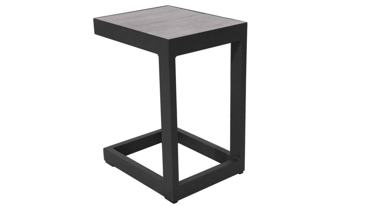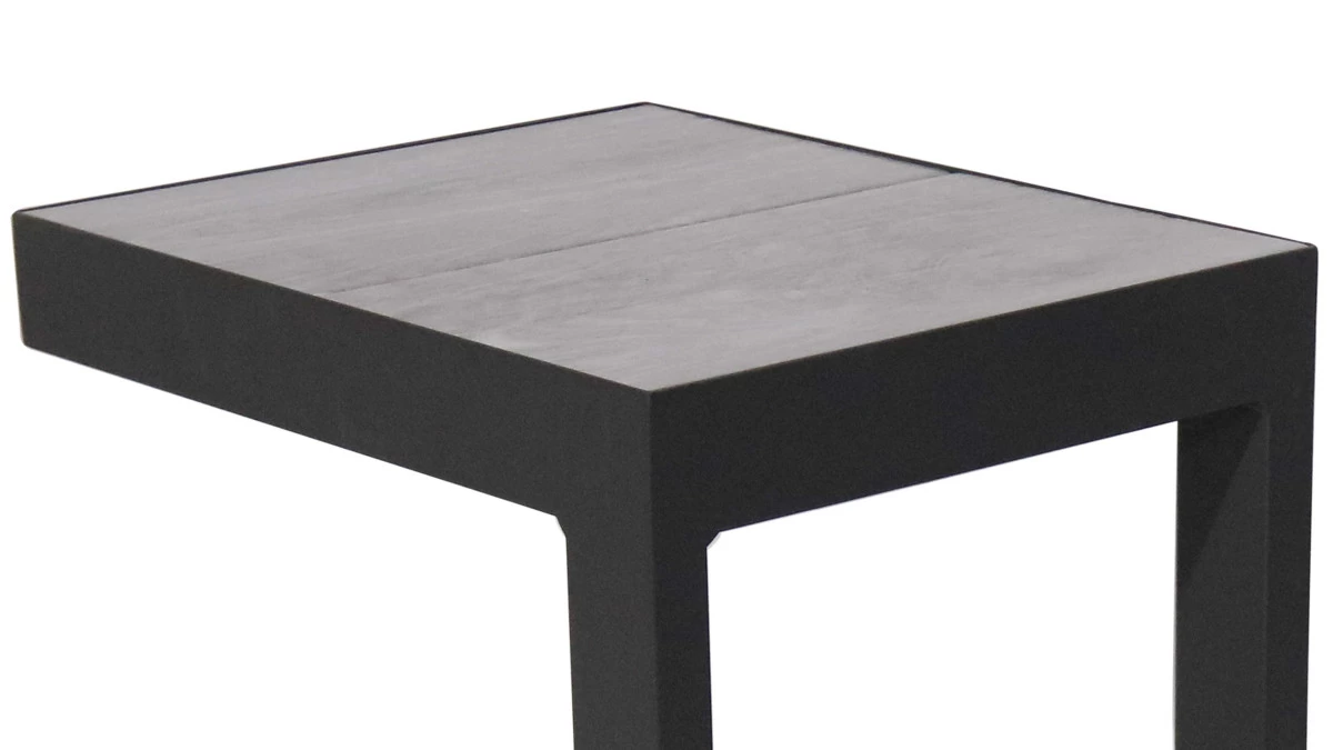 - Details anthrazitfarbenes Aluminium-Gestell dunkelgraue Keramik-Tischplatte in Holzoptik Maße ca .32 x 53,5 x 40 cm (B x H x T) Gartenmöbel-Serie