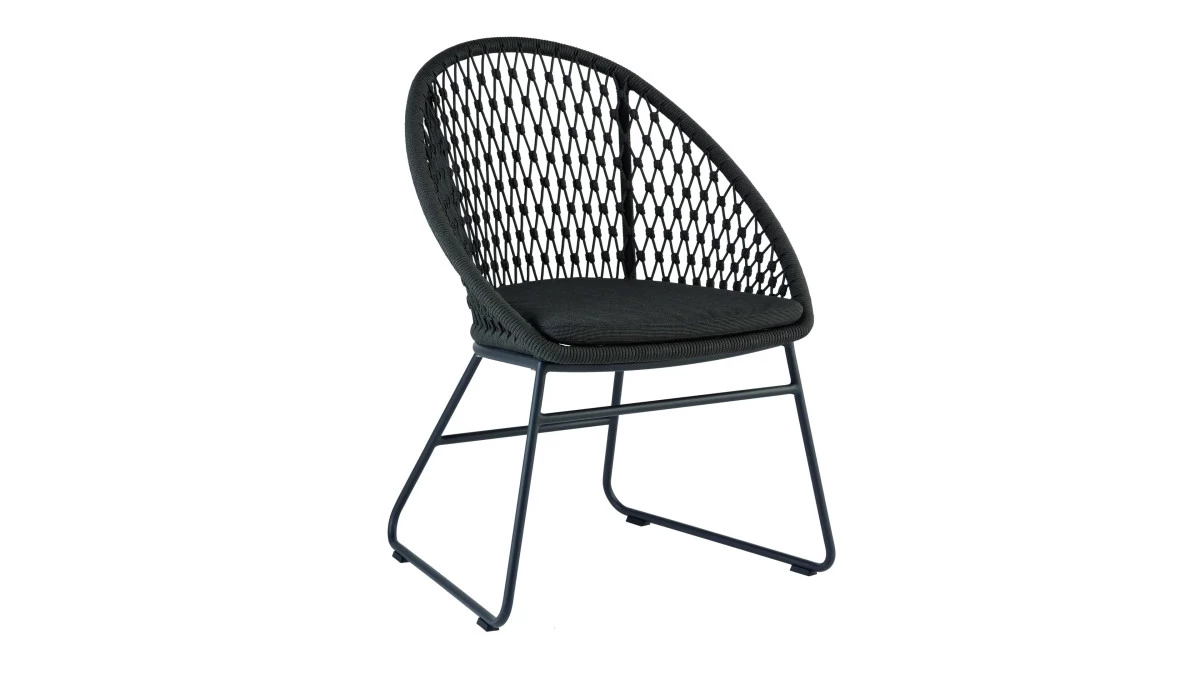 NIEHOFF GARDEN Gartenstuhl Kuta | anthrazitfarbenes Kunststoffgeflecht | Kordel durchgefärbt, witterungsbeständig, wasserabweisende, UV-beständig, reißfest und formstabil | charcoalfarbenes Sitzkissen, wasserabweisend und schnelltrocknend | schwarz pulverbeschichtes Aluminiumkufengestell | outdoorfähig | Maße ca. 62 x 88 x 64 cm (BxHxT)