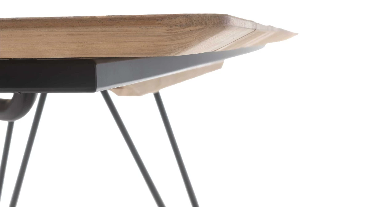Der noble Design-Gartentisch Varano von NIEHOFF GARDEN präsentiert sich hochwertig verarbeitet und modern-elegant designt. Er kombiniert ein schlankes Hairpin-Leg-Gestell aus anthrazitfarben pulverbeschichtetem Stahl mit einer herausragenden Tischplatte aus gebürstetem Teakholz. Beide Materialien stehen für extra hohe Robustheit und Stabilität sowie Langlebigkeit. Zusammen verleihen sie dem Tisch eine natürlich-warme und zugleich zeitlos edle Ausstrahlung. Der witterungsbeständige Teakholztisch fügt sich in viele verschiedene Gestaltungskonzepte stilsicher ein. Als optisches und funktionales Highlight fungiert die Schweizer Kante, dank derer die Tischplatte nach unten abgerundet ist. Die Maße des attraktiven Gartentisches belaufen sich auf ca. 95 x 76 x 196 cm (BxHxL). Er bietet bis zu 8 Personen bequem Platz, um gemeinsam zu essen oder sich angeregt zu unterhalten.