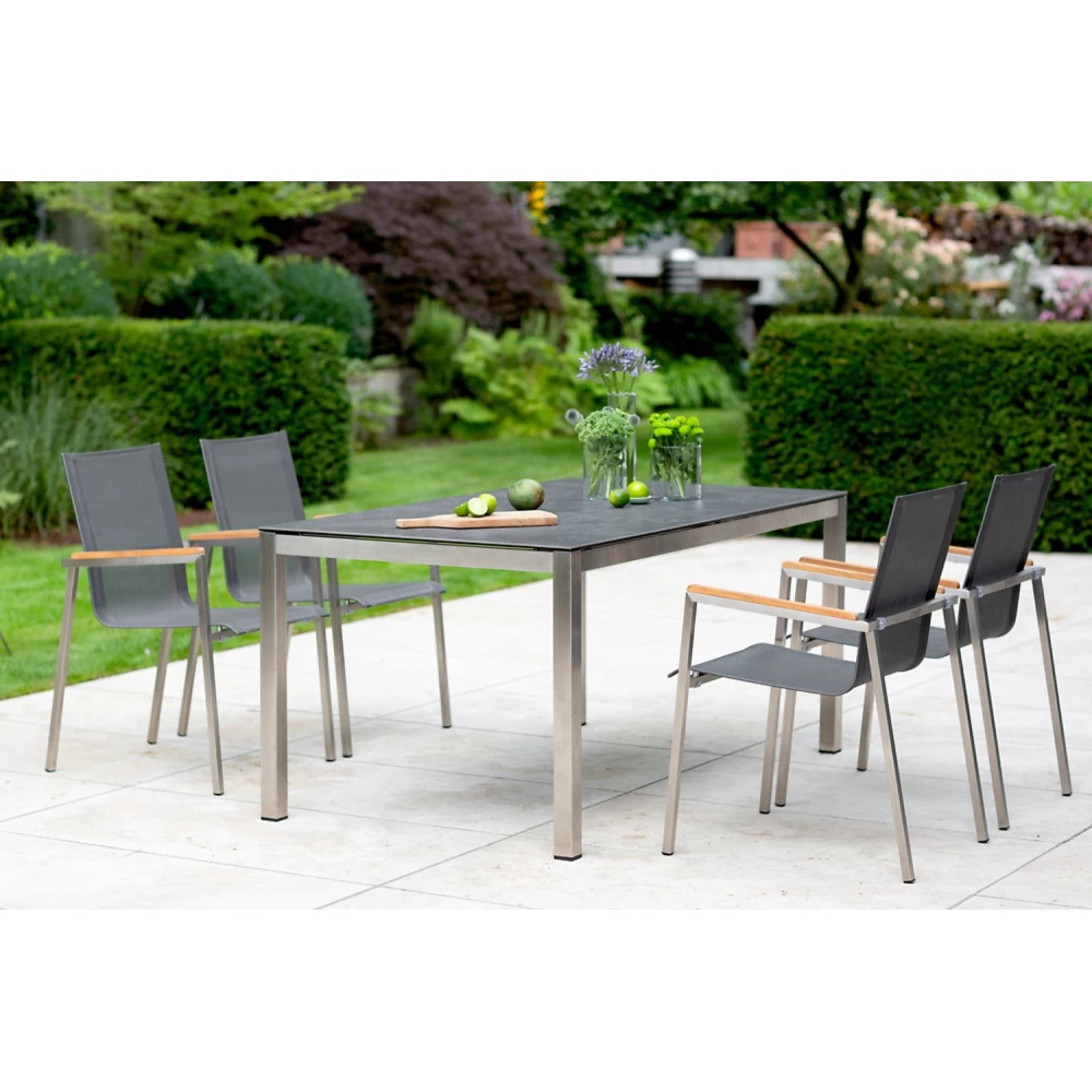 Tisch URBAN Tischplatte Keramik mittelgrau, Gestell 4-Fuss mit Zargen Edelstahl gebürstet, 180×90 / 76 cm