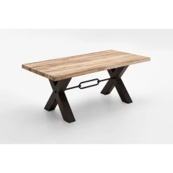 Tisch Vintage Dining 200 x 100 / H 76 cm Balkeneiche massiv natur strukturgehobelt, Wachseffekt-Oberfläche Kreuzgestell mit Spindel Roheisen geschwärzt