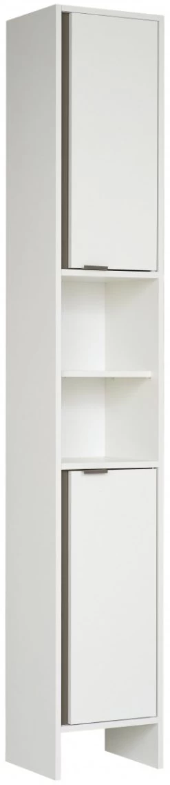 Quickset 337 Hochschrank, Weiß Perl/Zinngrau, 2 Drehtüren, 2 Einlegeböden, 2 Nischen, stehend