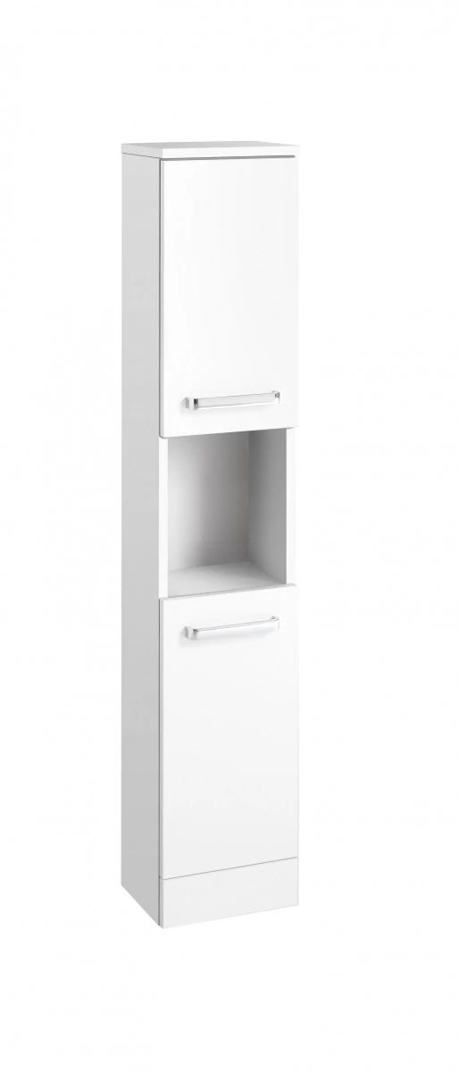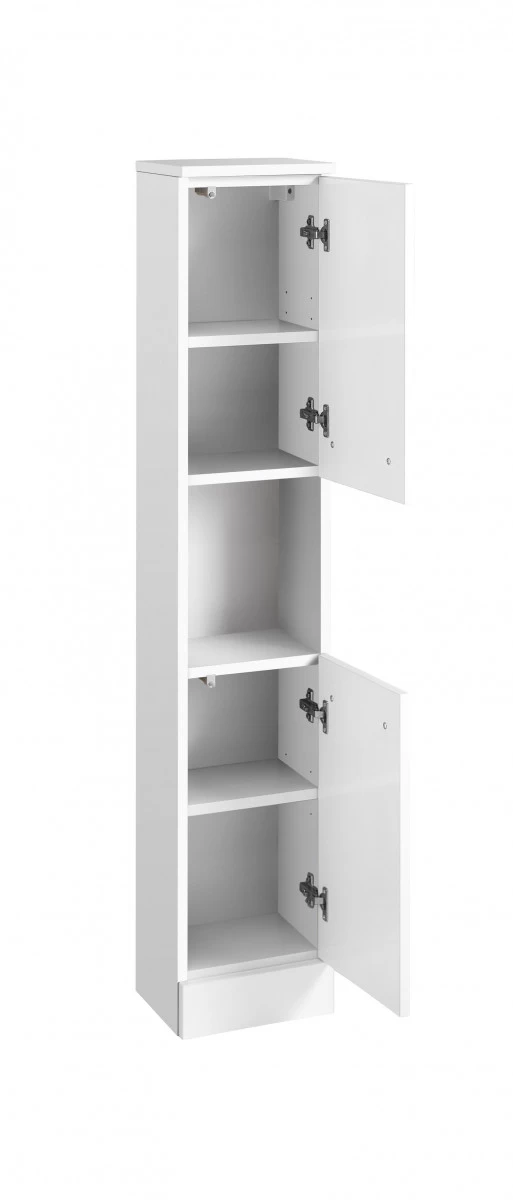 Quickset 354 Midischrank, Weiß Glanz/Weiß, 2 Drehtüren, Nische, 2 Einlegeböden, Abdeckplatte, Wandbefestigung, stehend