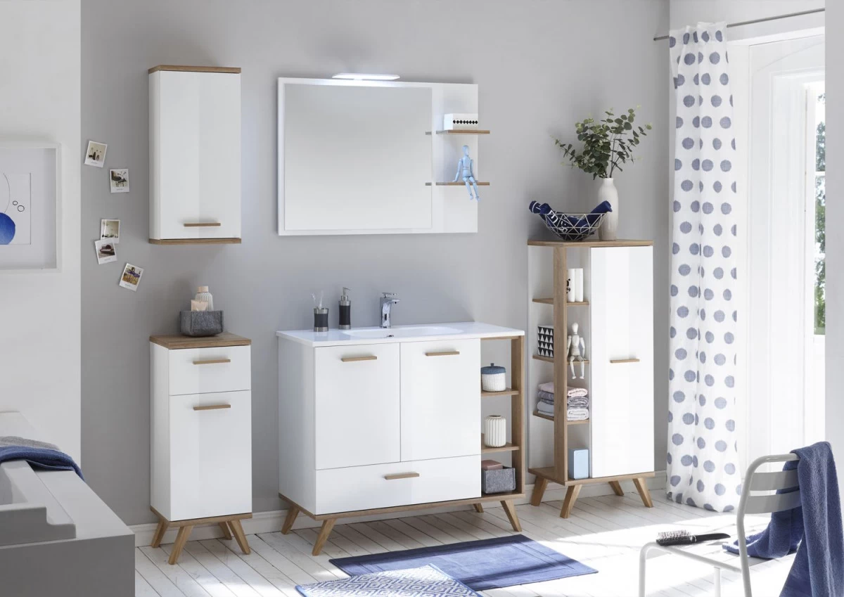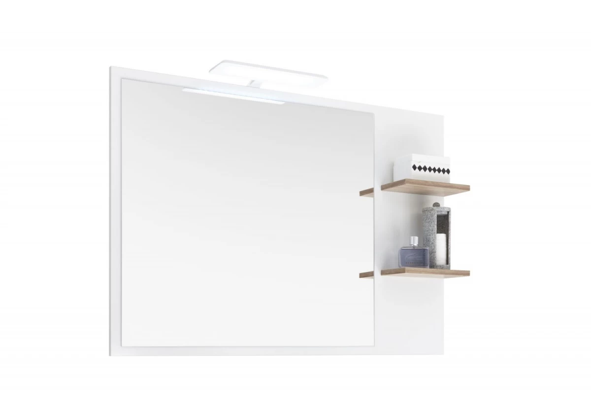 Quickset 923 Spiegel 09, Weiß Glanz/Riviera Eiche quer NB, mit 2 seitlichen Ablagen in Riviera Eiche quer NB