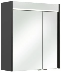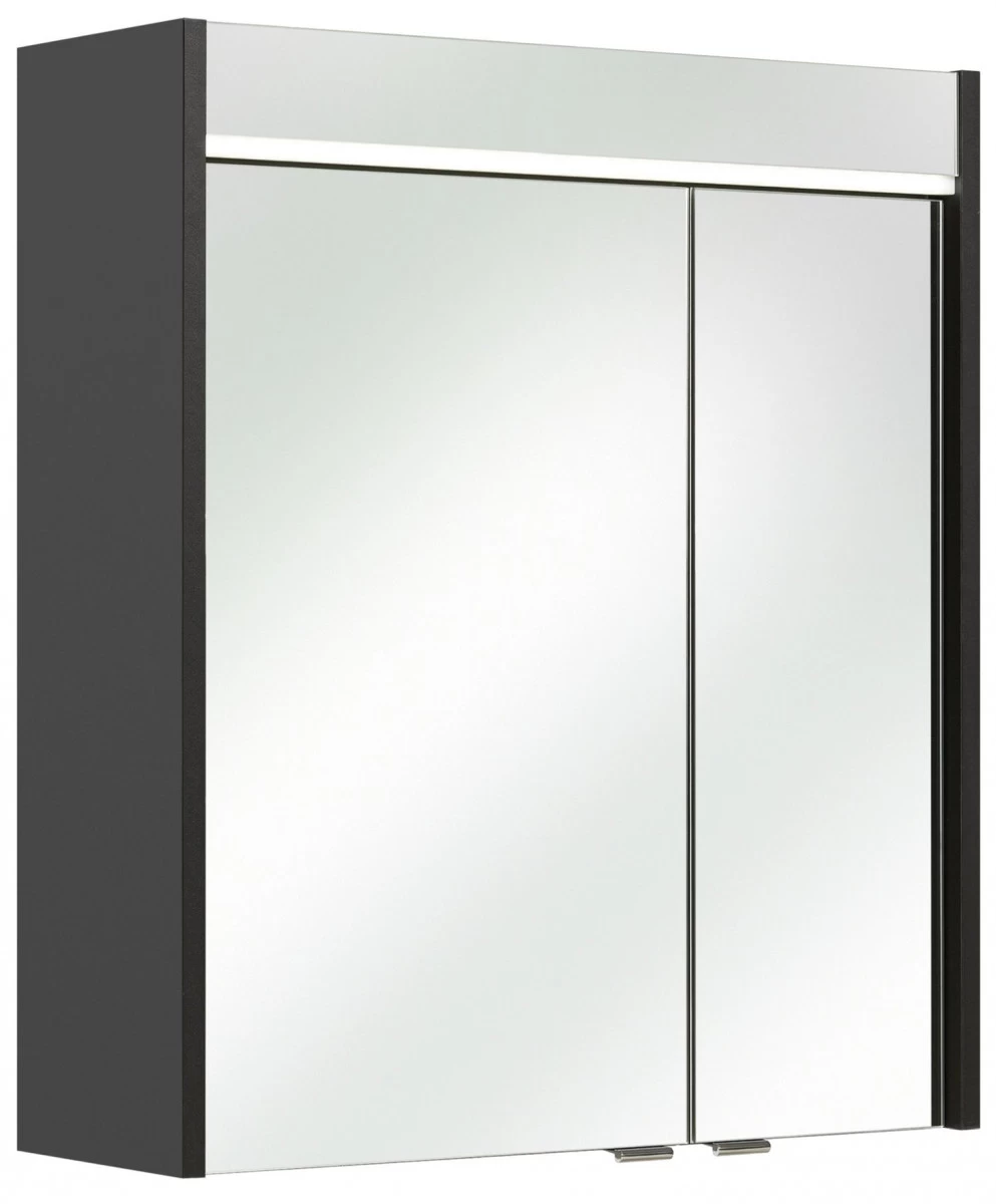 Quickset 327 Spiegelschrank 23-I, Anthrazit Dekor, Blende mit LED-Beleuchtung, 2 Spiegeltüren, 2 Einlegeböden, Schalter/Steckdose, Türdämpfer