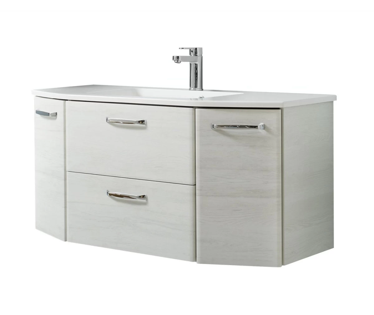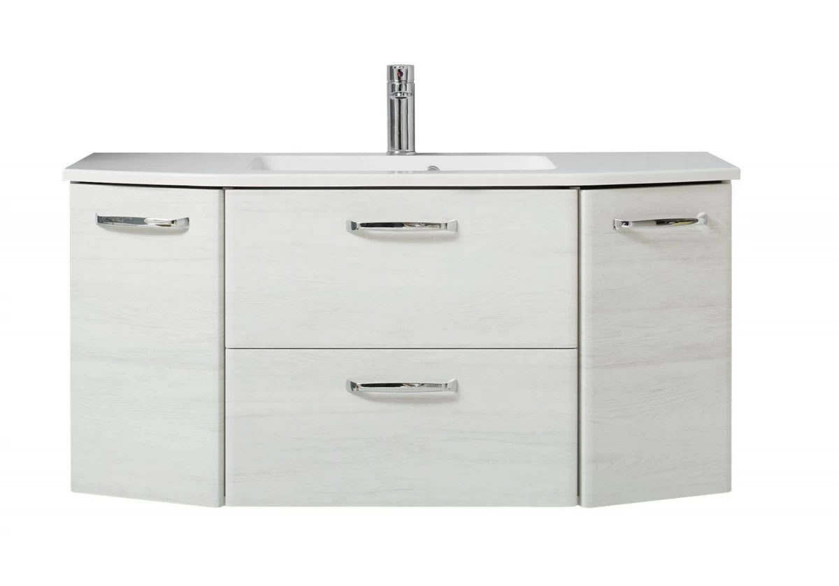 Quickset 936 Waschtischlösung bestehend aus: Mineralmarmor-Waschtisch 980.771120 & Waschtischunterschrank 936.011118, Eiche Weiß quer NB, 2 Drehtüren, 1 Klappe, 1 Auszug, Türdämpfung, wandhängend