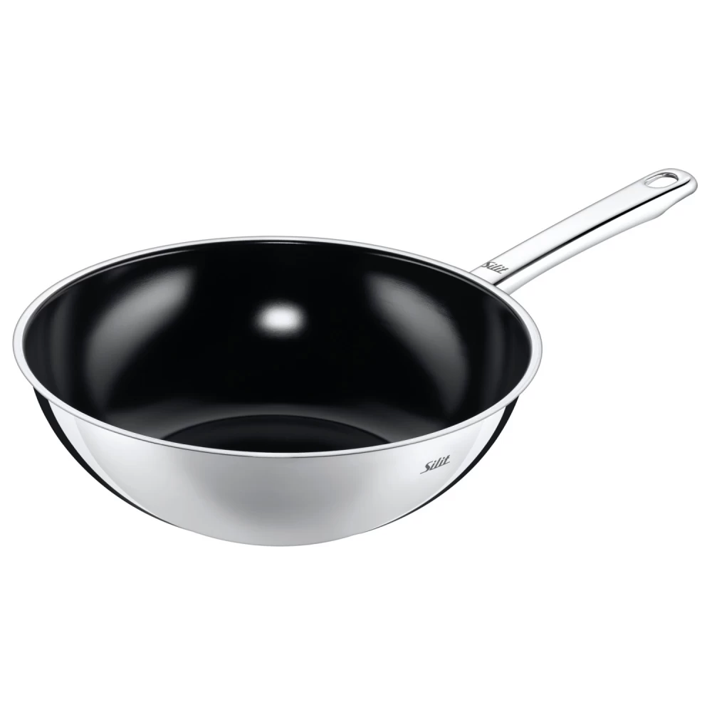 Die hohe, kugelig gewölbte Silit Pfanne ist Topf, Dampfgarer und Fritteuse in einem und zählt in Asien zu den wichtigsten Kochutensilien. Und auch wir lieben den Wok: Mit ihm gelingen nicht nur stilecht asiatische Gerichte, darin können Sie auch jede Art von Gemüse, Fleisch und Fisch dämpfen, schmoren und dünsten. Die bekannteste Garmethode ist freilich das Pfannenrühren, wenn unter ständigem Rühren die Zutaten kurz und scharf angebraten werden. Ein Deckel (nicht im Lieferumfang enthalten) hält beim Dünsten den Dampf im Wok, hochwertige Materialien leiten die Wärme gleichmäßig ins Innere des Woks weiter und speichern sie. Silit Woks dürfen mit ihrem stilvollen Design zum Servieren direkt auf den Tisch.