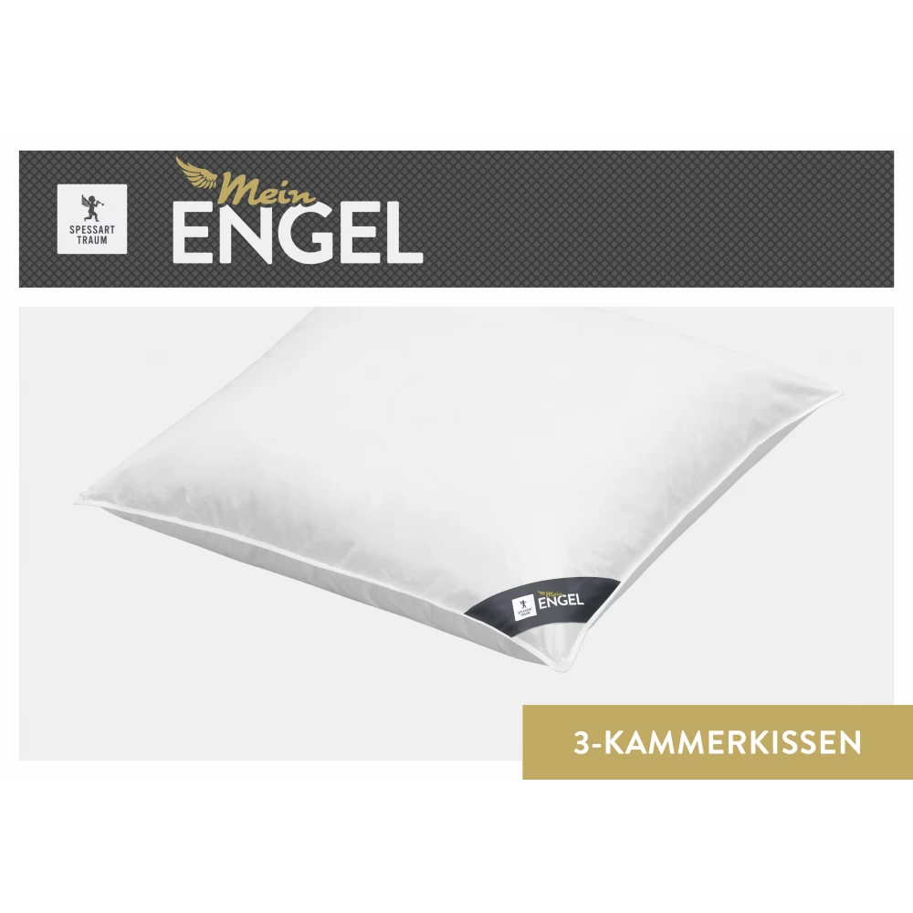 Das Kissen der Line MEIN ENGEL kombiniert mit seinem 3-Kammer-System eine angenehme Stützkraft mit hoher Anschmiegsamkeit. Dadurch wird ein erholsamer und beschwerdefreier Schlaf gefödert. Der Stützkern aus 100% Federn ist von zwei weichen Außenkammern mit einem 90%igen Anteil an weißen Gänsedaunen und einem 10%igen Anteil natürlicher Federn umschlossen. Der feine Bezugstoff aus 100% Baumwolle sorgt für ein besonders weiches Gefühl. Ausgezeichnet mit dem NOMITE-Siegel, eignet sich das 3-Kammerkissen hervorragend für Hausstauballergiker.