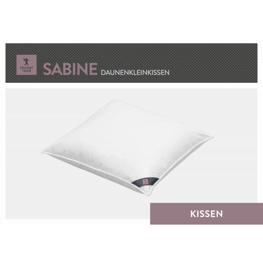 Das weiche Kissen der Linie SABINE verleiht Schlaf- und Wohnräumen noch mehr Komfort und eignet sich optimal als Begleiter für unterwegs. Die bauschige weiße Entendaune und der kuschlige Bezugstoff aus 100% Baumwolle sorgen für eine erholsame kleine Auszeit. Ausgezeichnet mit dem NOMITE-Siegel, eignet sich das Kissen hervorragend für Hausstauballergiker.