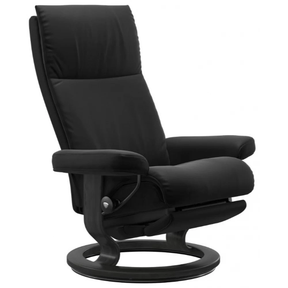 Hoher Komfort mit einer schlanken und modernen Optik. Sobald Sie im Stressless Aura Platz nehmen, umschließt er Ihren Körper. Die schmale und elegante Rückenlehne schafft zusammen mit den umschließenden Kissen der Rückenlehne und Sitzfläche einen spannenden und ins Auge springenden Look. Alle Stressless Komforteigenschaften sind selbstverständlich verfügbar und vermitteln jahrein jahraus dieses unübertroffene Stressless-Erlebnis. Der Sessel verändert seine Optik im Laufe der Zeit und erhält eine Patina – genau wie die Kissen, sodass ein markanter Look entsteht.