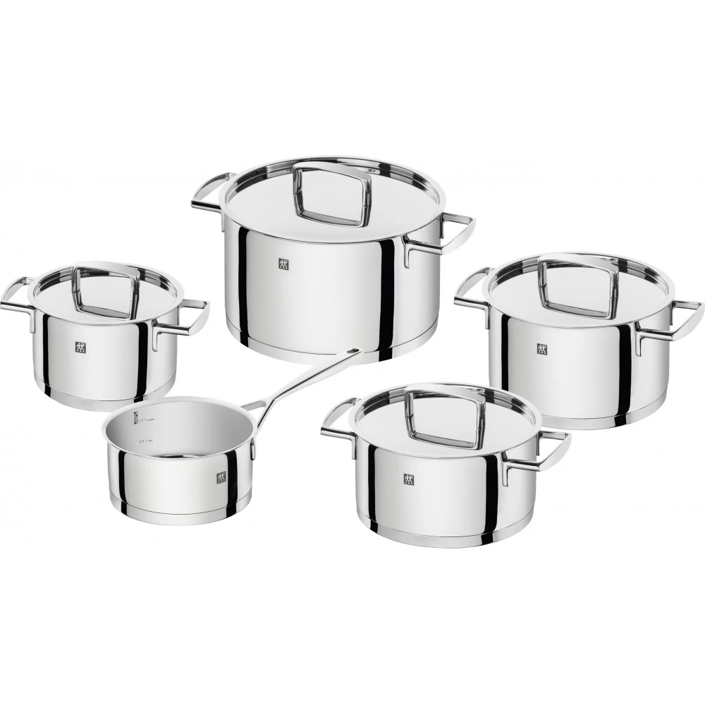 ZWILLING 5-tlg. Kochtopf-Set, bestehend aus: Kochtopf, Durchmesser 16, 20 und 24 cm, Bratentopf, Durchmesser 20 cm und Stielkasserolle, Durchmesser 16 cm (ohne Deckel), integrierte Füllskala, für alle Herdarten geeignet, inklusive Induktion